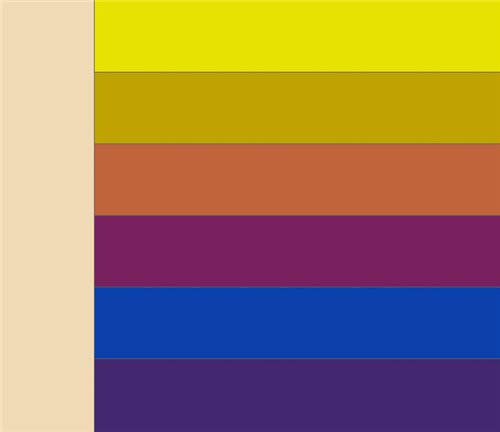 Бледно-желтый: фуксия, серый, коричневый, оттенки красного, желтовато-коричневый, синий, пурпурный.