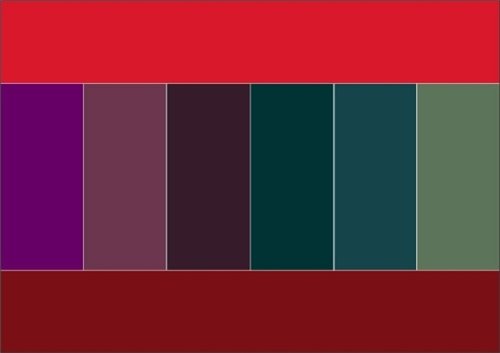 Бирюзовый: фуксия, вишнево-красный, желтый, коричневый, кремовый, темно-фиолетовый.