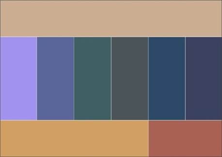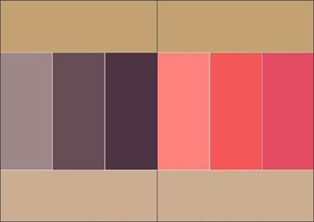 Темно-фиолетовый: золотисто-коричневый, бледно-желтый, серый, бирюзовый, зеленая мята, светло-оранжевый.