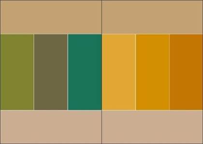 1. Цвета в непосредственной близости друг к другу (например, желтый и желто-оранжевый, желтый и желто-зеленый, фиолетовый и сине-фиолетовый и т.д.)