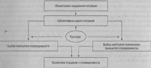 Функциональный подход в наиболее радикальном виде предполагает, что основные принципы справедливости кодифицируются в качестве обязательных норм во всех обществах, в которых распределение ресурсов происходит за пределами семьи. Моррис и Лейнг (Leung & Morris, 2001; Morris & Leung, 2000; Morris, Leung, Ames & Lickel, 1999) предложили модель вынесения суждений, касающихся справедливости, которая разграничивает абстрактные принципы справедливости и конкретные установки, связывающие абстрактные принципы с определенными социальными ситуациями.