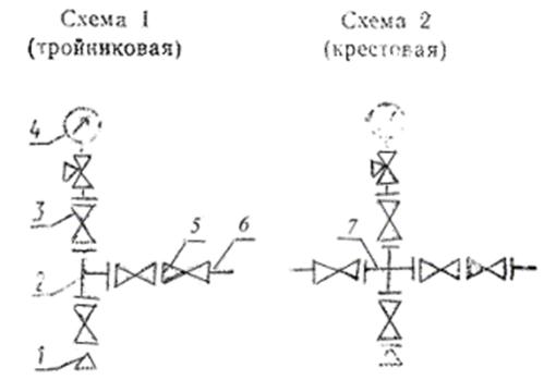 1.2. Типовые схемы трубных обвязок фонтанных и нагнетательных арматур должны соответствовать приведенным на черт. 3.