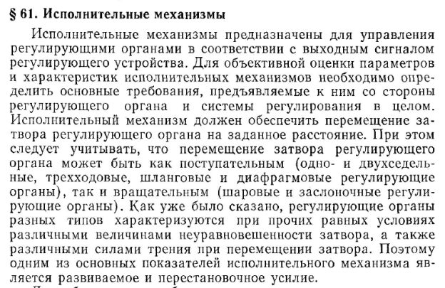 Как правило, мощность сигнала, вырабатываемого регулирующим устройством, бывает недостаточной для непосредственного перемещения рабочего органа, поэтому исполнительный механизм можно рассматривать как усилитель мощности, в котором слабый входной сигнал, усиливаясь во много раз, передается на рабочий орган.