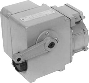 Рисунок 2. Исполнительный механизм МЭО-6,3/10-0,25-01 (производствоОАО “ЗЭиМ” г. Чебоксары, Россия) Состав механизма: электродвигатель синхронный, редуктор червячный, ручной привод, блок сигнализации положения реостатный БСПР или индуктивный БСПИ или токовый БСПТ или блок концевых выключателей БКВ, рычаг.