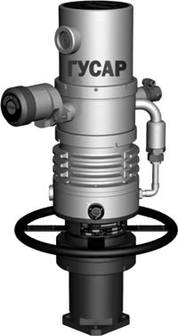 Рисунок 3. Многооборотный электропривод с электромеханической системой управления Гусар-МВ М.В.И12.50.28.У1 (производство – ООО НПО «Сибирский Машиностроитель» г. Томск, Россия) Состав механизма: электродвигатель асинхронный, редуктор волновой с промежуточными звеньями, ручной привод, электромеханический модуль управления для обеспечения любых заданных крутящих моментов на открытие и закрытие запорной арматуры, электромеханическая перестраиваемая муфта ограничения крутящего момента, местный указатель положения запорного органа арматуры, муфта включения ручного дублера.