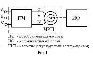 В технологических процессах, где нет возможности или необходимости менять скорость вращения двигателей частотные преобразователи не могут быть использованы полностью с функциональной точки зрения. Для таких технологических процессов разработано оборудование ЭнерджиСейвер. Чтобы ознакомиться с информацией об оборудовании ЭнерджиСейвер перейдите по ссылке. Современный частотно регулируемый электропривод состоит из асинхронного или синхронного электрического двигателя и преобразователя частоты (см. рис.1.). Электрический двигатель преобразует электрическую энергию в механическую энергию и приводит в движение исполнительный орган технологического механизма. Преобразователь частоты управляет электрическим двигателем и представляет собой электронное статическое устройство. На выходе преобразователя формируется электрическое напряжение с переменными амплитудой и частотой. Название «частотно регулируемый электропривод» обусловлено тем, что регулирова ние скорости вращения двигателя осуществляется изменением частоты напряжения питания, подаваемого на двигатель от преобразователя частоты. На протяжении последних 10 –15 лет в мире наблюдается широкое и успешное внедрение частотно регулируемого электропривода для решения различных технологических задач во многие отрасли экономики. Это объясняется в первую очередь разработкой и созданием преобразователей частоты на принципиально новой элементной базе, главным образом на биполярных транзисторах с изолированным затвором. В настоящей статье коротко описаны известные сегодня типы преобразователей частоты, применяемые в частотно регулируемом электроприводе, реализованные в них методы управления,их особенности и характеристики. При дальнейших рассуждениях будем говорить о трехфазном частотно регулируемом электроприводе, так как он имеет наибольшее промышленное применение. 3.2 О методах управления параметрами электродвигателя В синхронном электрическом двигателе частота вращения ротора в установившемся режиме равна частоте вращения магнитного поля статора . В асинхронном электрическом двигателе частота вращения ротора в установившемся режиме отличается от частоты вращения на величину скольжения . Частота вращения магнитного поля зависит от частоты напряжения питания. При питании обмотки статора электрического двигателя трехфазным напряжением с частотой создается вращающееся магнитное поле. Скорость вращения этого поля определяется по известной формуле = где – число пар полюсов статора. Переход от скорости вращения поля , измеряемой в радианах, к частоте вращения , выраженной в оборотах в минуту, осуществляется по следующей формуле где 60 – коэффициент пересчета размерности. Подставив в это уравнение скорость вращения поля, получим, что Таким образом, частота вращения ротора синхронного и асинхронного двигателей зависит от частоты напряжения питания. На этой зависимости и основан метод частотного регулирования. Изменяя с помощью преобразователя частоту на входе двигателя, мы регулируем частоту вращения ротора. В наиболее распространенном частотно регулируемом приводе на основе асинхронных двигателей с короткозамкнутым ротором применяютсяскалярное и векторное частотное управление. При скалярном управлении по определенному закону