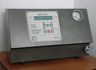 Прибор АЛП-01 ДП Измерительный блок имеет в своем составе дозировочную и измерительную камеры, входной и выходной клапаны, узел турбулизации с газовой камерой, термостатирующую рубашку, датчик давления и вентиль, сообщающий дозировочную и измерительную камеры. Прибор используется для измерения в полуавтоматическом режиме давления насыщенных паров и содержания в нефти растворенного газа (ГОСТ Р 8.601-2003; МИ 2575-2000). | |||||||||||||||