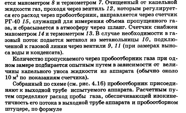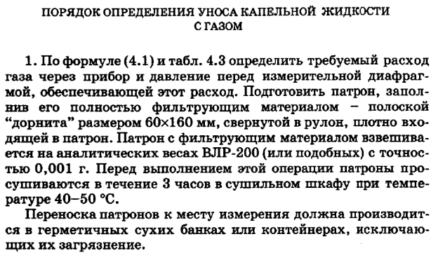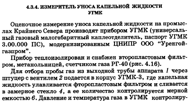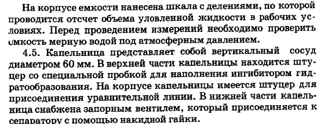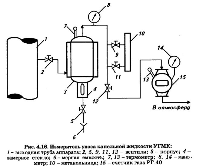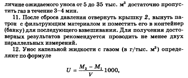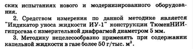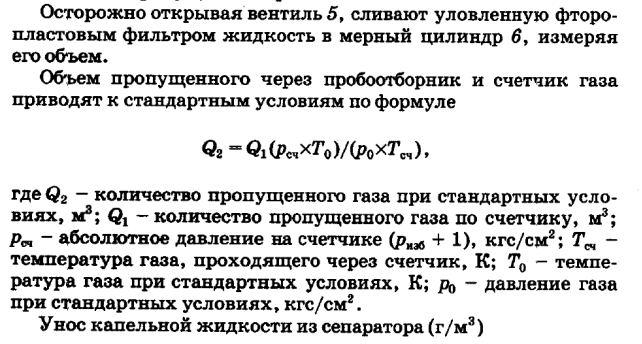 Метод измерения содержания капельной жидкости заключается в определении веса фильтрующего элемента до и после пропускания через него заданного количества газа.