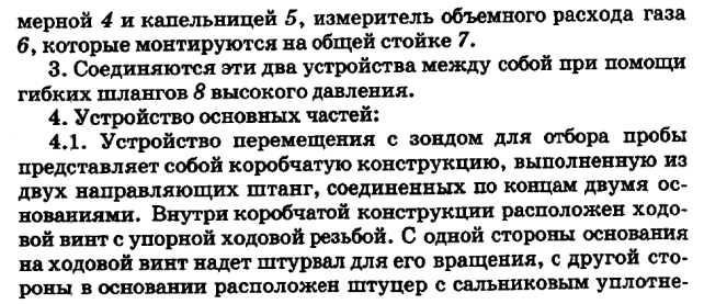 Описание Результат выполнения конструкторской разработки. Работа измерителя основана на определении объема жидкости, образованной на фильтрующем устройстве, после пропускания через него определенного объема пробы исследуемого газа. Отбор газа производится при условии изокинетичности пробы (условие равенства скорости газа в трубопроводе и отборной трубке измерителя). Требуемый расход газа в трубопроводе устанавливается с помощью дроссельной шайбы и вентиле по показаниям манометра. В случаях, когда исследуется неосушенный газ, то во избежание гидратообразования на вентиле используется дополнительный адсорбер, заполненный мелкопористым силикагелем типа КСМ для улавливания влаги. В местах, где используется только осушенный газ, измеритель используется без адсорбера. Измеритель уноса ИУ-2 можно использовать для работы в районах с умеренным и холодным климатом с температурой окружающего воздуха от -40 до +400С. Измеритель отличается малыми габаритами и не требует специальных мест отбора пробы газа. |