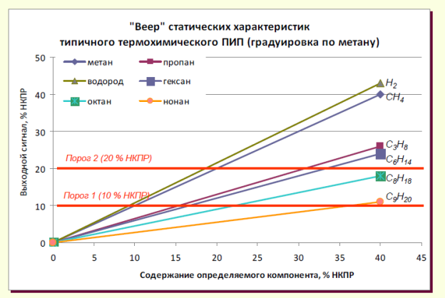 · Термохимические датчики, основанные на измерении теплового эффекта реакции каталитического окисления газа, применяют главным образом для определения концентраций горючих газов