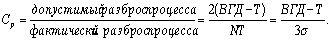 Показатель Cp в формуле (11) - обобщение Cp из формулы (1), полученной из отношения допустимого разброса процесса к фактическому. При T=m показатели совпадают.