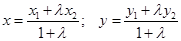 2. Координаты точки, делящей отрезок в заданном отношении: