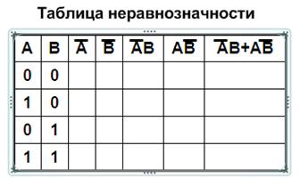 Г) При решении задачлогической алгебры с помощью логических элементов: коньюнктор, дизьюнктор мен инвертор – необходимо создать разнообразные их соединения ив зависимости от условия задачи.