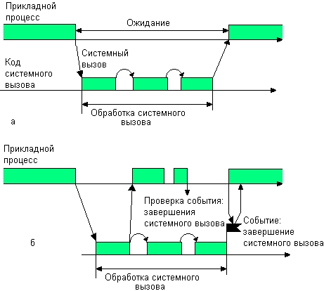Рис. 4.15. Синхронные и асинхронные системные вызовы