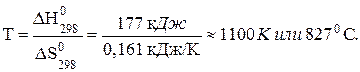 Это означает, что при стандартных условиях реакция в прямом направлении не протекает. Реакцию можно осуществить, если повысить температуру. В этом случае энтропийный фактор будет превышать энтальпийный фактор и энергия Гиббса будет иметь отрицательное значение.