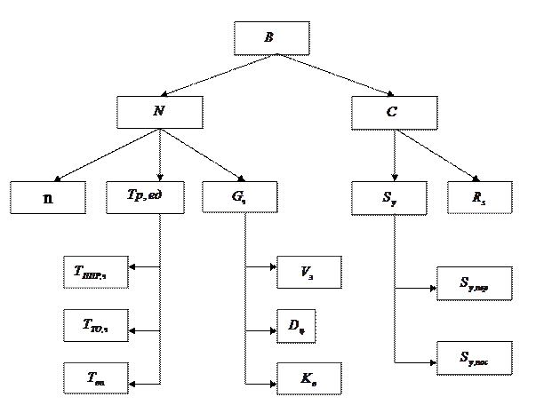 На основании факторной модели (см. рис. 3) и значений промежуточных и исходных показателей определяется изменение стоимости продукции (в грн) по формуле: