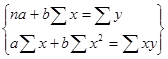 Чтобы начти значения коэффициентов а и b. необходимо решить следующую систему уравнений: