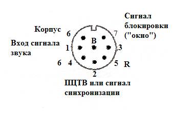 | DIN, 8 контактов | Вход левого звукового канала Управляющие данные с ПДУ Вход правого звукового канала Корпус (заземление для звуковых схем) Корпус (заземление для дистанционного управления) Корпус (заземление для видеосхем) Корпус (заземление для звуковых схем) Видеовход |