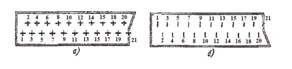 Рис. 1.20. Штекерный соединитель SCART по европейскому стандарту: а – гнездо; б - штекер