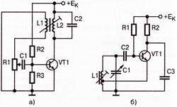 В промышленных супергетеродинных приемниках и тюнерах наиболее часто встречаются три схемы отдельных гетеродинов, различающиеся по физическому принципу: с трансформаторной обратной связью, с индуктивной «трехточкой» и с емкостной «трехточкой». Каждая из них имеет свои достоинства и недостатки, поэтому выбор той или иной схемы осуществляет конструктор, руководствуясь в каждом конкретном случае определенными соображениями.