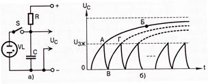 Рис. 2.15 Простейший релаксационный генератор на неоновой основе: