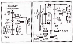 Оставалось найти такой источник, величина и полярность постоянного напряжения на выходе которого изменялись бы пропорционально величине частотной расстройки гетеродина. Но такой источник даже не пришлось искать, поскольку именно таким свойством обладает любой частотный детектор - дискриминатор иди дробный детектор.