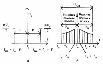располагаются симметрично верхняя и нижняя боковые полосы (ВБП и НБП). Спектр