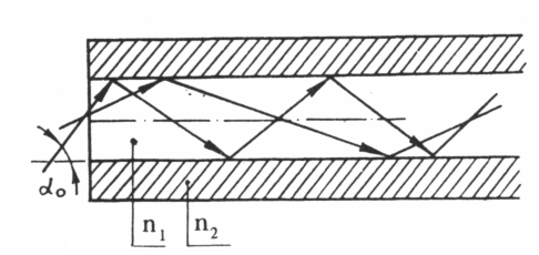оптического генератора, падает на границу раздела сердечника с воздухом (его показатель преломления