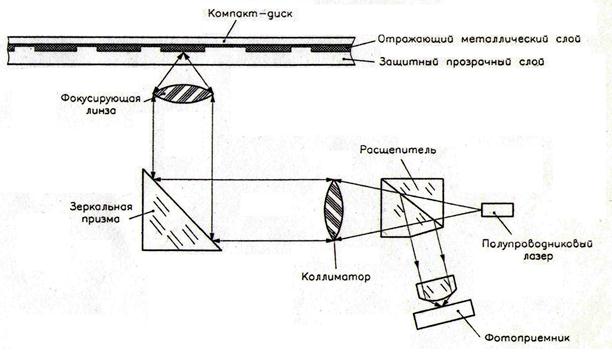 Рис. 4.11. Оптическая схема считывания информации с компакт диска