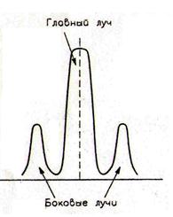 Процесс и методы слежения за точкой фокусировки лазерного луча и его движением по информационной дорожке достаточно сложны, поэтому применяются специальные методы формирования лазерного пучка и обработки отраженных лучей. Лазерный пучок диода вначале проходит через дифракционную решетку, с помощью которой создаются несколько параллельных лучей, среди них три основных: средний (главный, наиболее мощный) и два боковых (лучи первого порядка с меньшей мощностью). Названные лучи существуют в трехмерном пространстве, их условное изображение на плоскости приведено на рис. 4.12. В задачу указанной «тройки» лучей входит отслеживание движения лазерного луча по информационной дорожке.