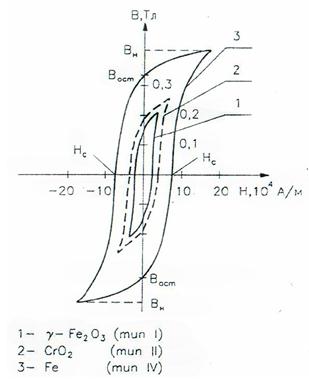 Остаточная индукция Вост является самой важной характеристикой магнитного материала ленты. Чем она выше, тем больше максимальный остаточный магнитный поток и, следовательно, лучше характеристики записи воспроизведения обеспечит эта лента. Величина Нс, равная напряженности магнитного поля, необходимой для изменения индукции от Вост до нуля, называется коэрцитивной силой по индукции. Кроме этого, ферромагнитные материалы характеризуются магнитной проницаемостью ц, показывающей, во сколько раз магнитная индукция в ферромагнетике больше, чем в воздухе.