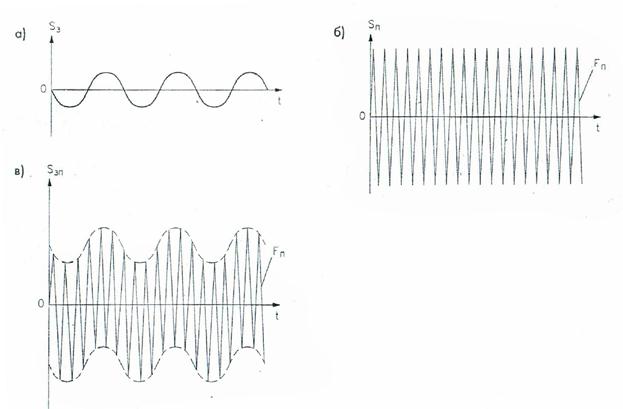 Для снижения нелинейных искажений и повышения остаточной намагниченности ленты в магнитофонах применяется запись сигналов с высокочастотным подмагничиванием. Тогда записываемое низкочастотное (звуковое) колебание Sзп.(рис 4.26) суммируется с колебанием подмагничивания SП (рис 4,26). частота Рп которого гораздо выше верхней звуковой частоты и составляет десятки килогерц. В результате возникает сигнал SЗП (рис.4.26), с помощью которого осуществляется смещение диапазона изменения записываемого аудиосигнала на линейный участок кривой намагниченности. При этом само высокочастотное колебание на магнитную ленту не записывается. Оптимальное значение тока высокочастотного подмагничивания зависит от магнитных свойств используемой ленты.
