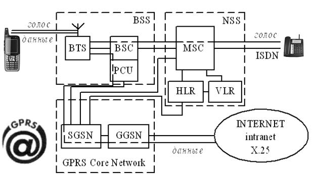 Еще одной составной частью системы GPRS является PCU (Packet Control Unit -устройство контроля пакетной передачи). PCU стыкуется с контроллером базовых станций BSC и отвечает за направление трафика данных непосредственно от BSC к SGSN.