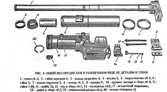 Орудие 2А28: назначение, боевые свойства и общее устройство; применяемые боеприпасы.