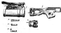 4) Отделить казенник от корпуса ударно-спускового механизма: взяться правой рукой за корпус, а левой — за казенник и разъединить их.