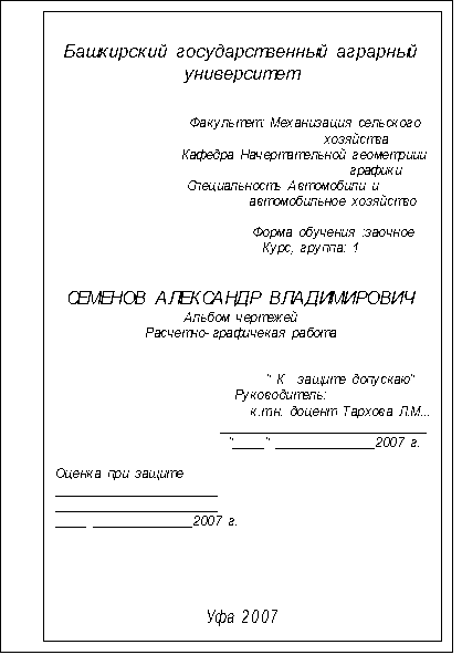 Название учебного заведения и фамилия, имя, отчество автора выполняются шрифтом №7. остальные надписи - шрифтом №5.