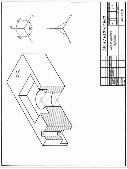 6) Построить наглядное изображение детали в прямоугольной изометрической проекции