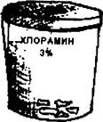 6. ЗАМАЧИВАЕТ его в емкости с 3% раствором хлорамина.