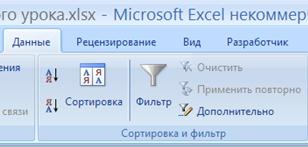 Сортировка, т.е. упорядочение данных в определенном порядке, производится во вкладке Данные – Сортировка и фильтр.