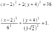 Приведем уравнение к каноническому виду, выделяя полные квадраты,