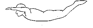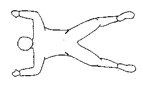 Туловище и бедра лежат в одной горизонтальной плоскости, голени согнуты в коленных суставах под углом до 90 градусов, носки оттянуты. Угол между бедрами до 90 градусов. Руки в локтях согнуты на 90 градусов. Угол между корпусом и плечом 90 градусов. Плечи и голова подняты. Пальцы сведены вместе. Кончики пальцев рук и нос находятся на одной линии. Мышцы тела находятся в полу расслабленном состоянии