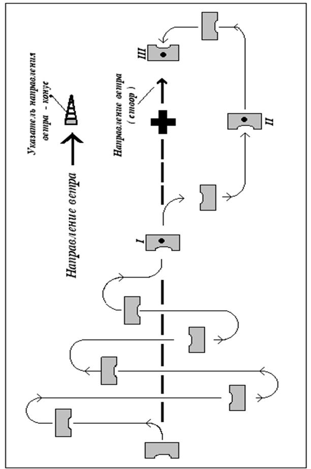Для этого, независимо от нахождения парашютиста по отношению к цели с высоты 100м, он должен развернуть купол против ветра и далее выполнить все требования по приземлению. При отсутствии в этом случае указателя ветра в районе приземления для определения направления приземления руководствоваться наземными ориентирами - возможными дымами, положением солнца и другими ориентирами, которые оговаривались на предпрыжковой подготовке.