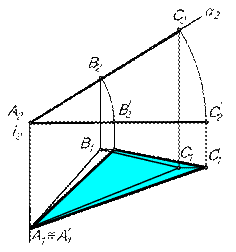 проекции В1 и С1, перемещаясь параллельно ОХ, определят истинную величину треугольника