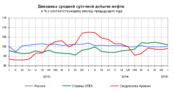 | 1) Без газового конденсата. 2) По данным публикации ОПЕК "Market indicators as at end: January-2015". |