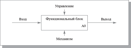 Необходимо отметить, что любой функциональный блок по требованиям стандарта должен иметь, по крайней мере, одну управляющую интерфейсную дугу и одну исходящую. Это и понятно – каждый процесс должен происходить по каким-то правилам (отображаемым управляющей дугой) и должен выдавать некоторый результат (выходящая дуга), иначе его рассмотрение не имеет никакого смысла.
