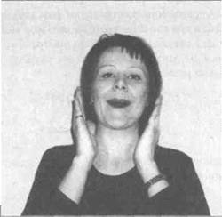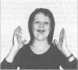 Откройте рот, прижмите уголки губ к коренным зубам. Верхняя губа прижата к зубам. Поместите кончики пальцев у уголков губ и медленно отводите их в стороны от лица (см. рис. 22). Продолжайте сохранять положение, продолжая медленно отводить руки, пока не почувствуете мышечную боль. Тогда приподнимите голову примерно на 2 см. Теперь руки находятся на расстоянии около 5 см от лица. Считайте до 35, одновременно делая быстрые круговые движения ладонями у лица, чтобы усилить напряжение.