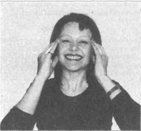 Прикройте глаза, оставив маленькую щелочку. Пальцы расположите по обе стороны глаз и очень осторожно сдвиньте их к вискам (см. рис. 23). Сильно напрягите мускулы век, считайте до пяти, расслабьтесь, через три секунды снова начните упражнение. Выполняйте упражнение вначале пять раз в этом ритме, ежедневно прибавляя по одному. Вы должны довести количество повторений до двадцати.