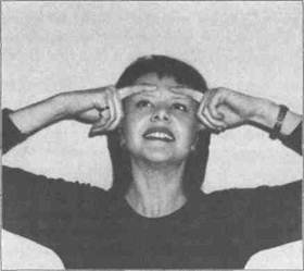 Поместите указательные пальцы над бровями. Попытайтесь, сильно нажимая пальцами, опустить брови, одновременно поднимая лоб. При этом старайтесь не морщить его (см. рис. 29). Изо всех сил напрягите мышцы лба. Достигнув высшей точки напряжения, сосчитайте до пяти, затем расслабьтесь. Через три секунды начните упражнение сначала. Ежедневно прибавляйте по одному упражнению, постепенно доведя количество повторений до десяти раз подряд.