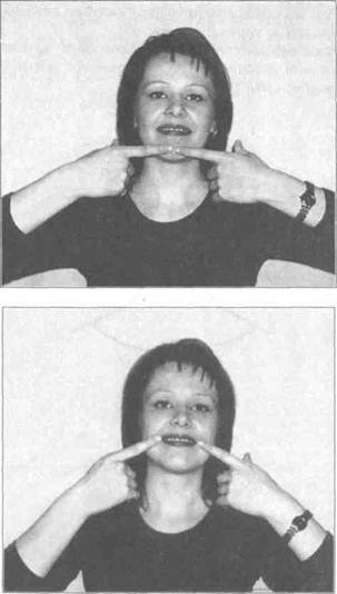 Расположите указательные пальцы рук на середине подбородка (см. рис. 34 а). Полукруговыми движениями, мягко, не растягивая кожу, массируете от подбородка до уголков губ.
