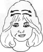Очень мягко массируете, проводя кончиками пальцев от середины лба до висков (см. рис. 42 а).
